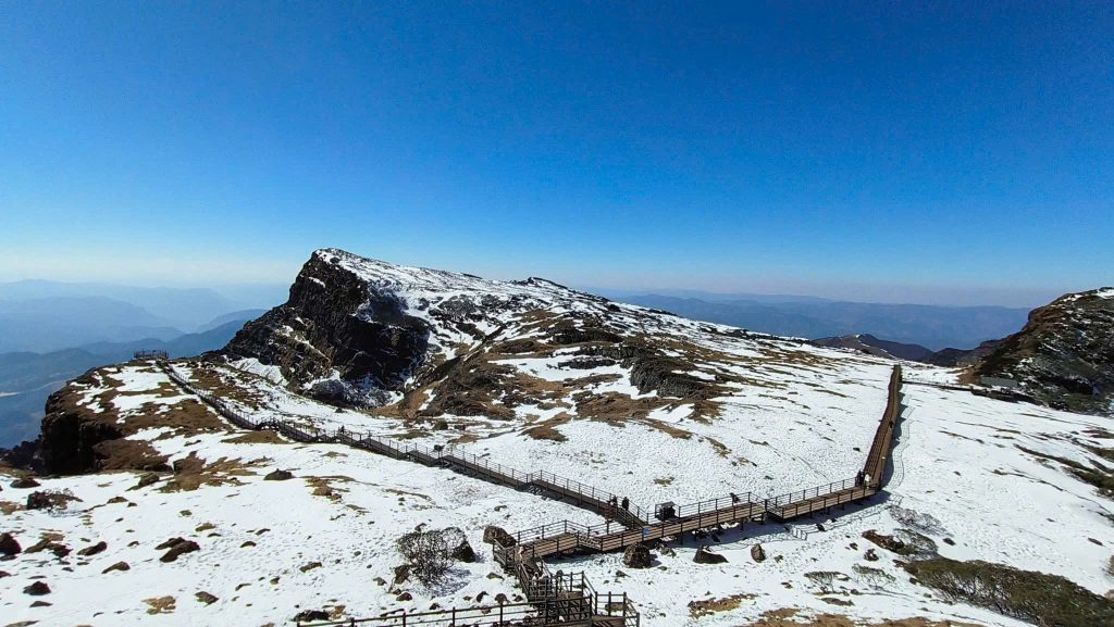- Kiệu Tử Sơn – Nằm cách thành phố Côn Minh 155km, núi Jiaozi là nơi lý tưởng cho du lịch mùa đông và các môn thể thao mùa đông. Đỉnh chính của nó ở độ cao 4.247 mét, là điểm cao nhất ở khu vực trung tâm của tỉnh Vân Nam. Nơi đây có một phong cảnh tuyệt vời chinh phục bất kỳ vị khách khó tính nào. Thời điểm thích hợp nhất để ghé thăm địa điểm này là từ tháng 10 đến giữa tháng 4 năm sau, bạn có thể chiêm ngưỡng khung cảnh tuyết rơi, hồ băng, thác băng và các cảnh quan khác. Bên cạnh đó, Quý khách cũng có thể tận hưởng các hoạt động mùa đông như trượt tuyết.